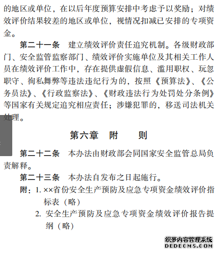 安全生產(chǎn)預防及應急專項 資金績效管理暫行辦法