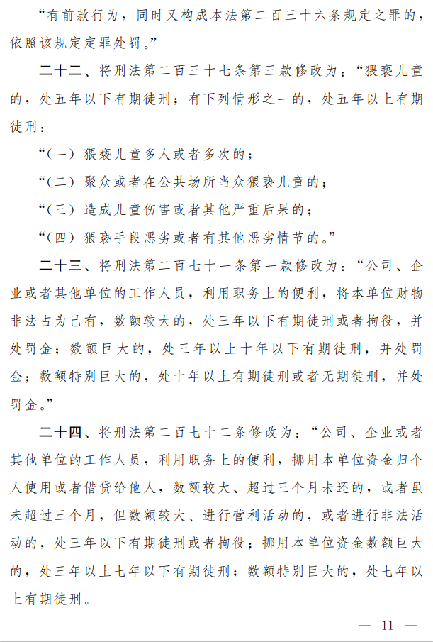 第十三屆全國人大常委會第二十二次會議對《中華人民共和國刑法修正案(十一)(草案二次審議稿)》進行了審議,現(xiàn)公布《中華人民共和國刑法修正案(十一)(草案二次審議稿)》全文。