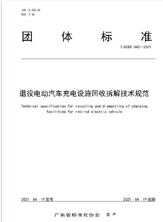 廣東省標協(xié)發(fā)布《退役電動汽車充電設(shè)施回收拆解技術(shù)規(guī)范》團標