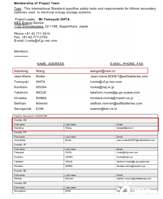 中國電子技術標準化研究院(賽西,CESI)作為IEC/SC21A國內總歸口單位,多年來一直積極參與電池領域相關的國際標準化活動,負責向IEC推薦行業(yè)專家、組織電池行業(yè)相關單位成員參加IEC/SC21A國際會議、答復IEC文件和投票工作。賽西專家作為IEC 63056:2020的項目組成員和起草人直接參與了該標準的起草工作。