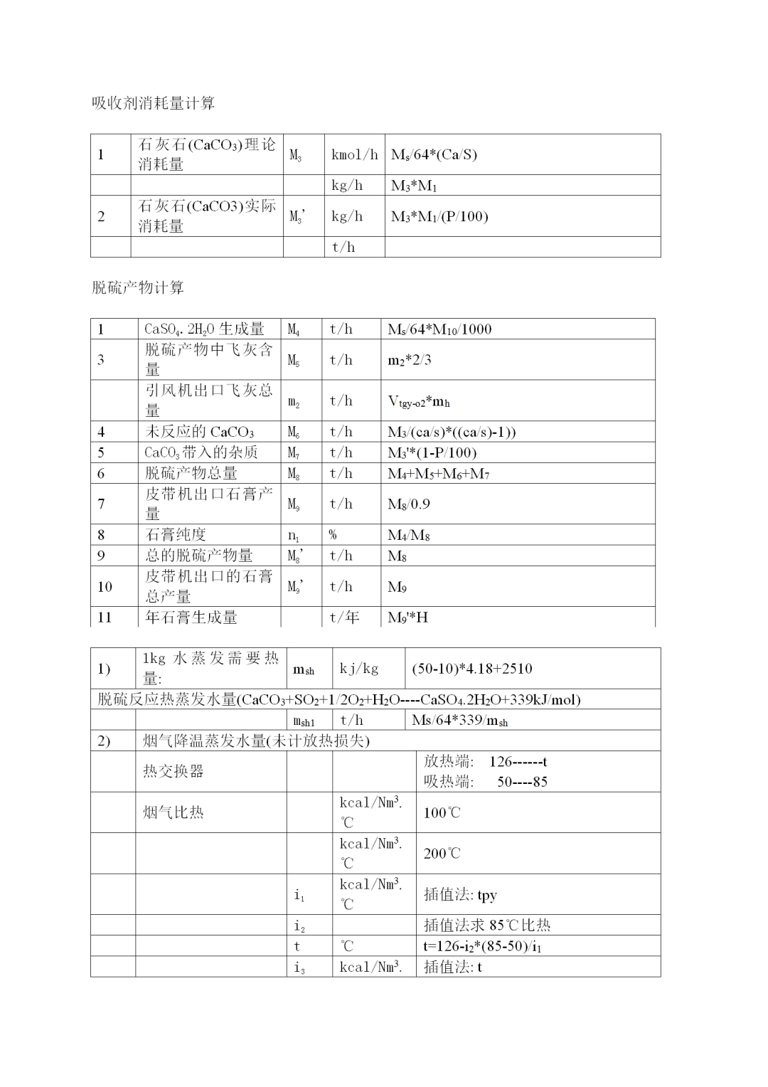 2、脫硫計算公式