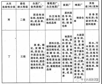 2 黃酒廠采用黃酒糟生產(chǎn)白酒時,其生產(chǎn)、儲存的火災(zāi)危險性分類及建(構(gòu))筑物的耐火等級應(yīng)按白酒廠的要求確定。