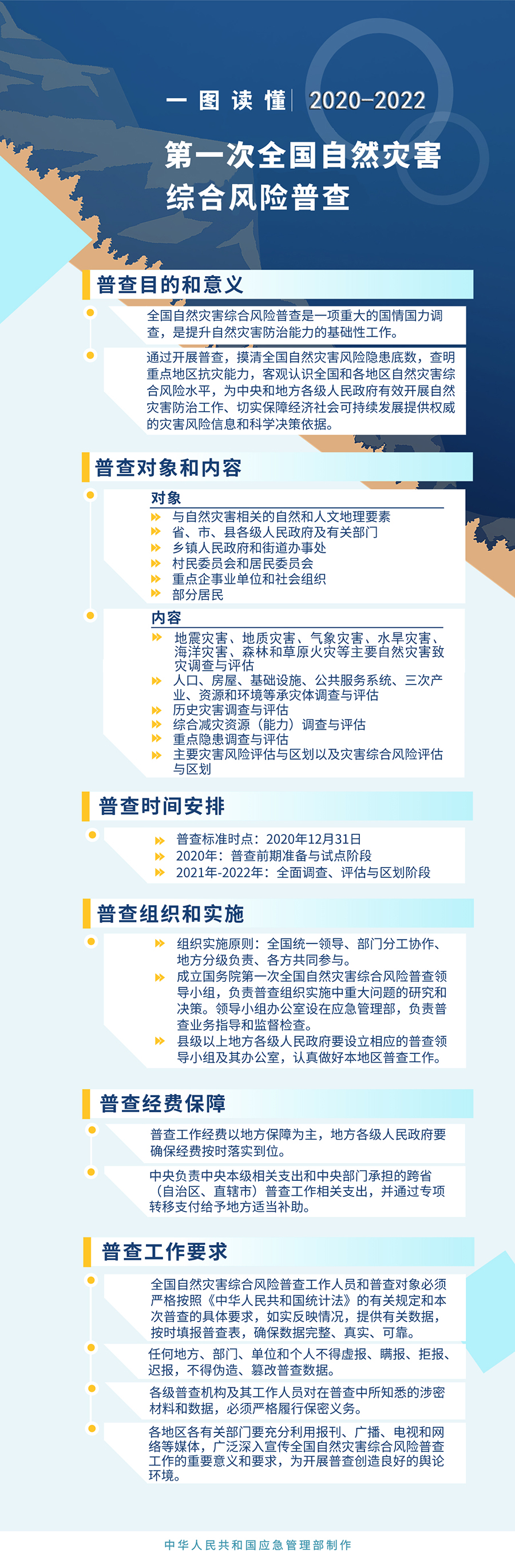 過去一年多來(lái),應(yīng)急管理部會(huì)同多個(gè)部門和單位,組建了全國(guó)自然災(zāi)害綜合風(fēng)險(xiǎn)普查技術(shù)組,凝聚100余位專家的力量,論證編制普查相關(guān)方案。普查方案明確了三個(gè)基本目標(biāo),分別是:摸清全國(guó)自然災(zāi)害風(fēng)險(xiǎn)隱患底數(shù),查明重點(diǎn)區(qū)域抗災(zāi)能力,客觀認(rèn)識(shí)全國(guó)和各地區(qū)自然災(zāi)害綜合風(fēng)險(xiǎn)水平。