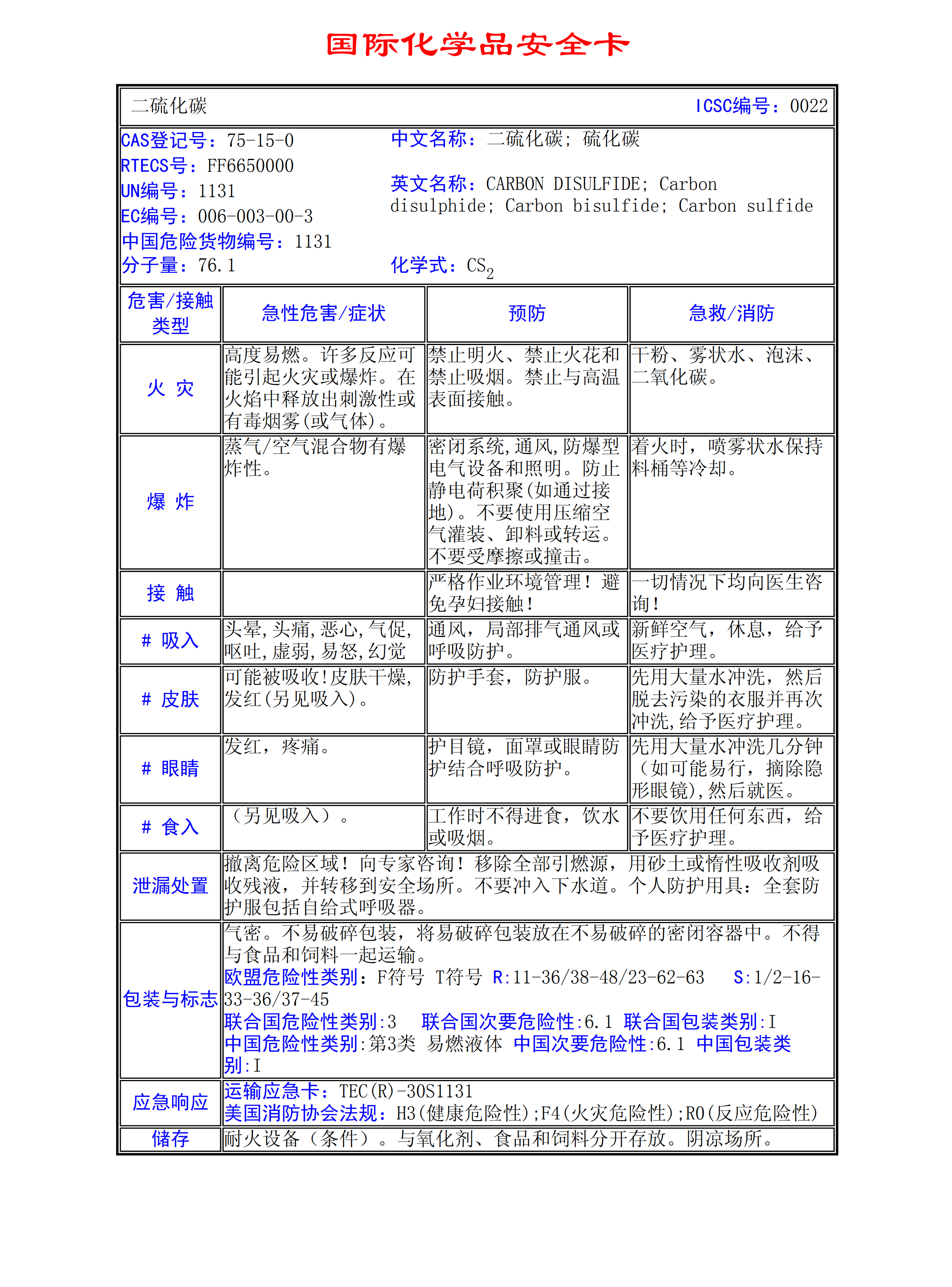 二硫化碳MSDS