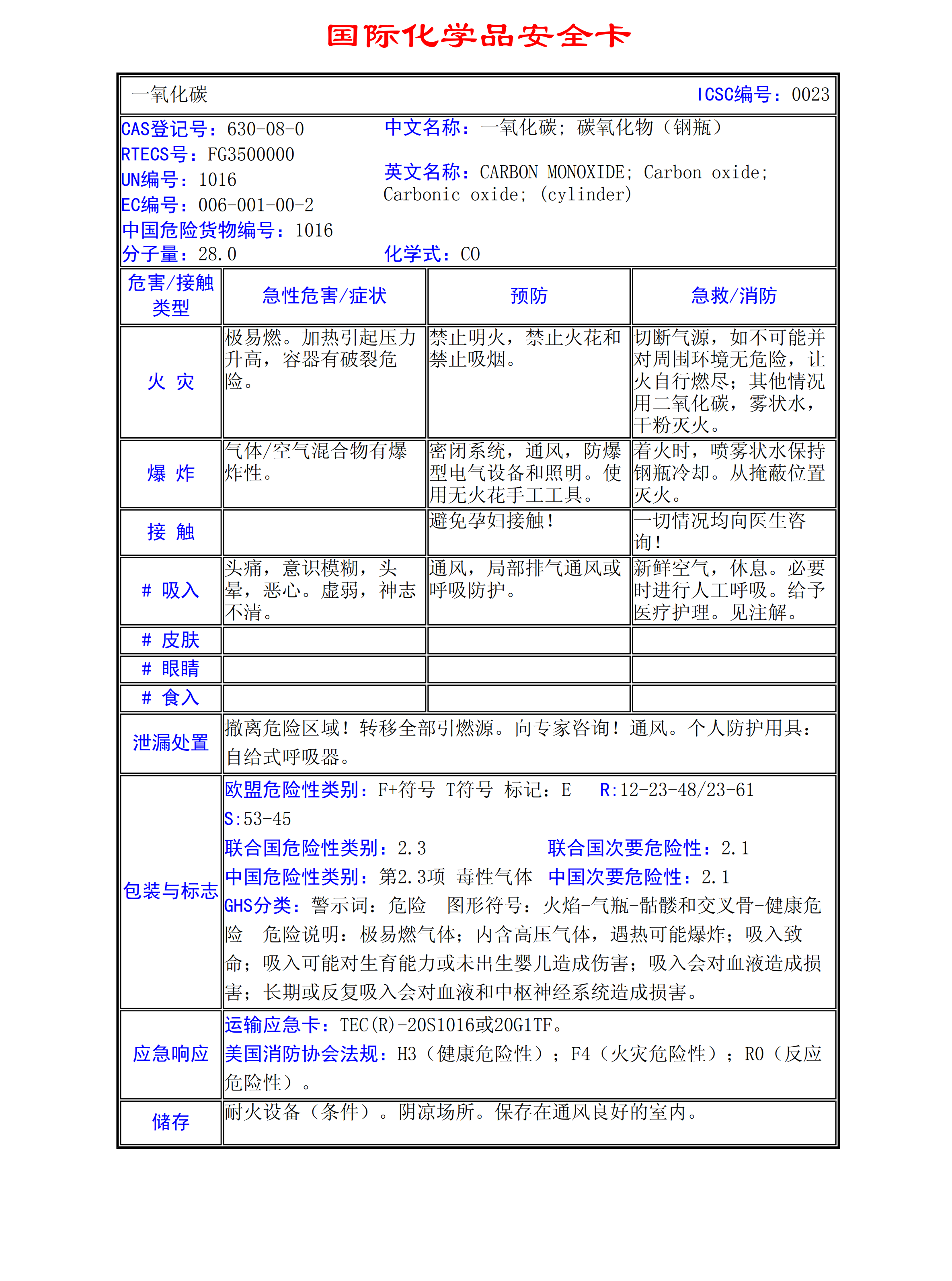 一氧化碳MSDS