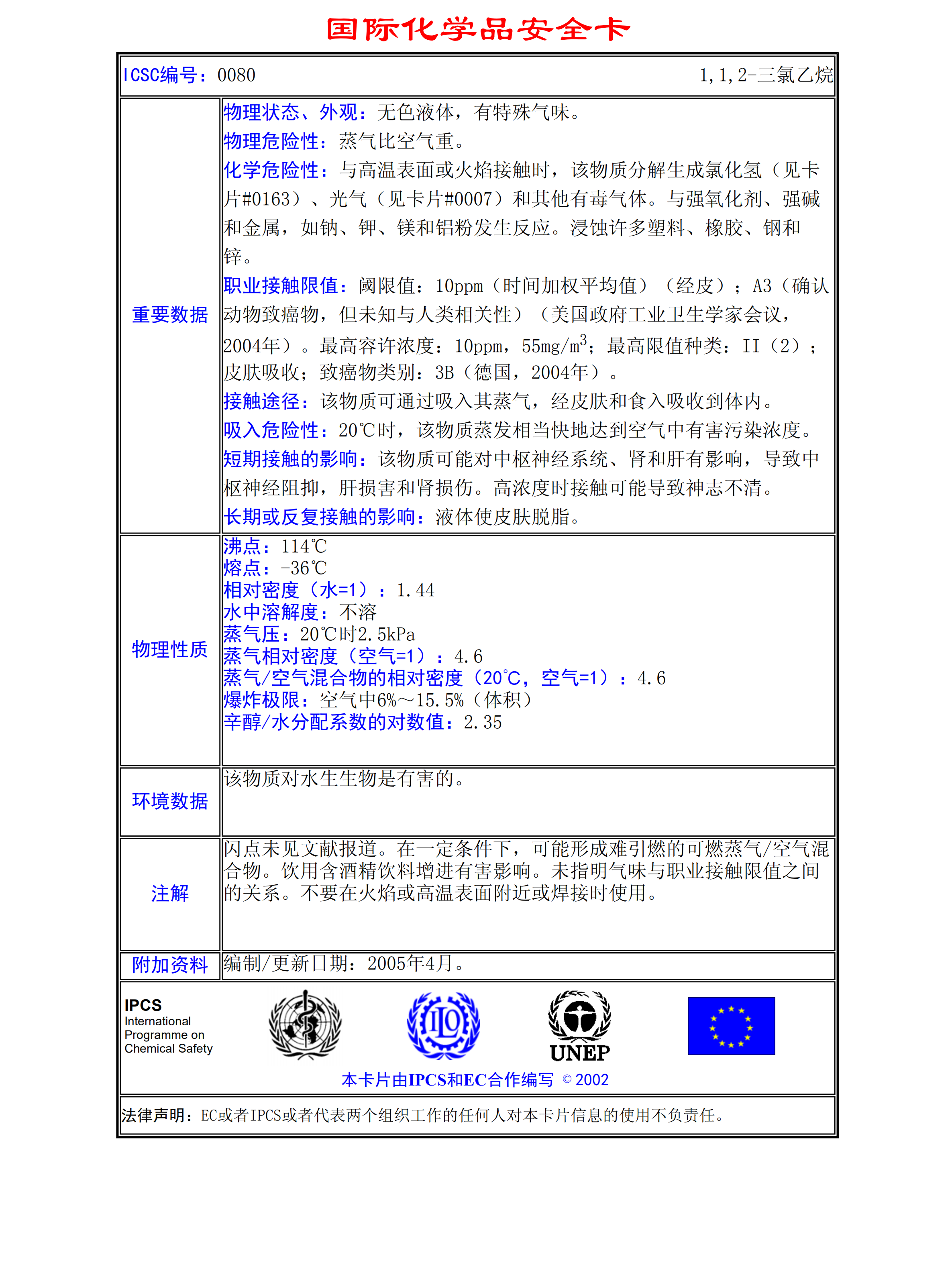 1,1,2-三氯乙烷MSDS
