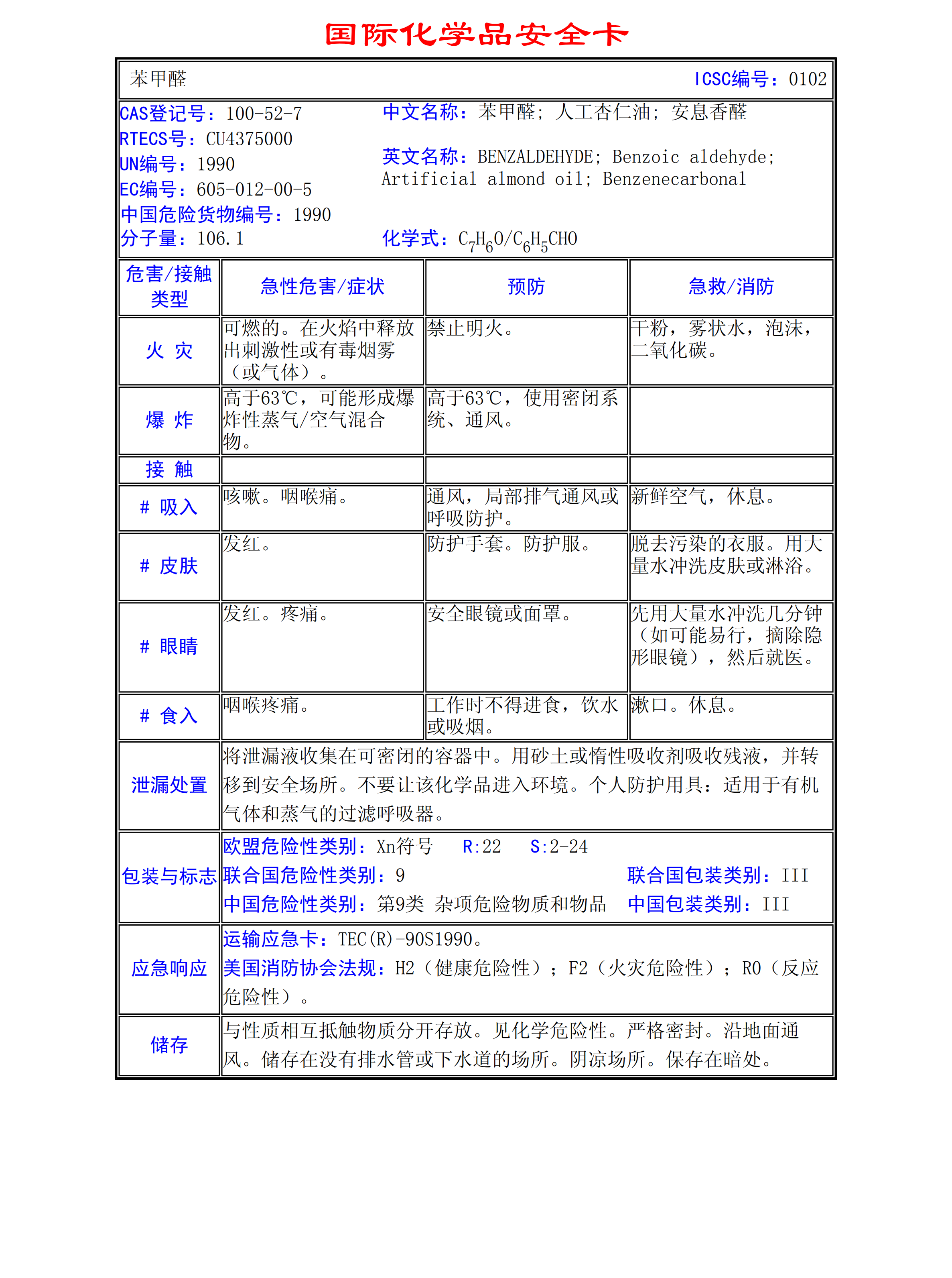 苯甲醛MSDS