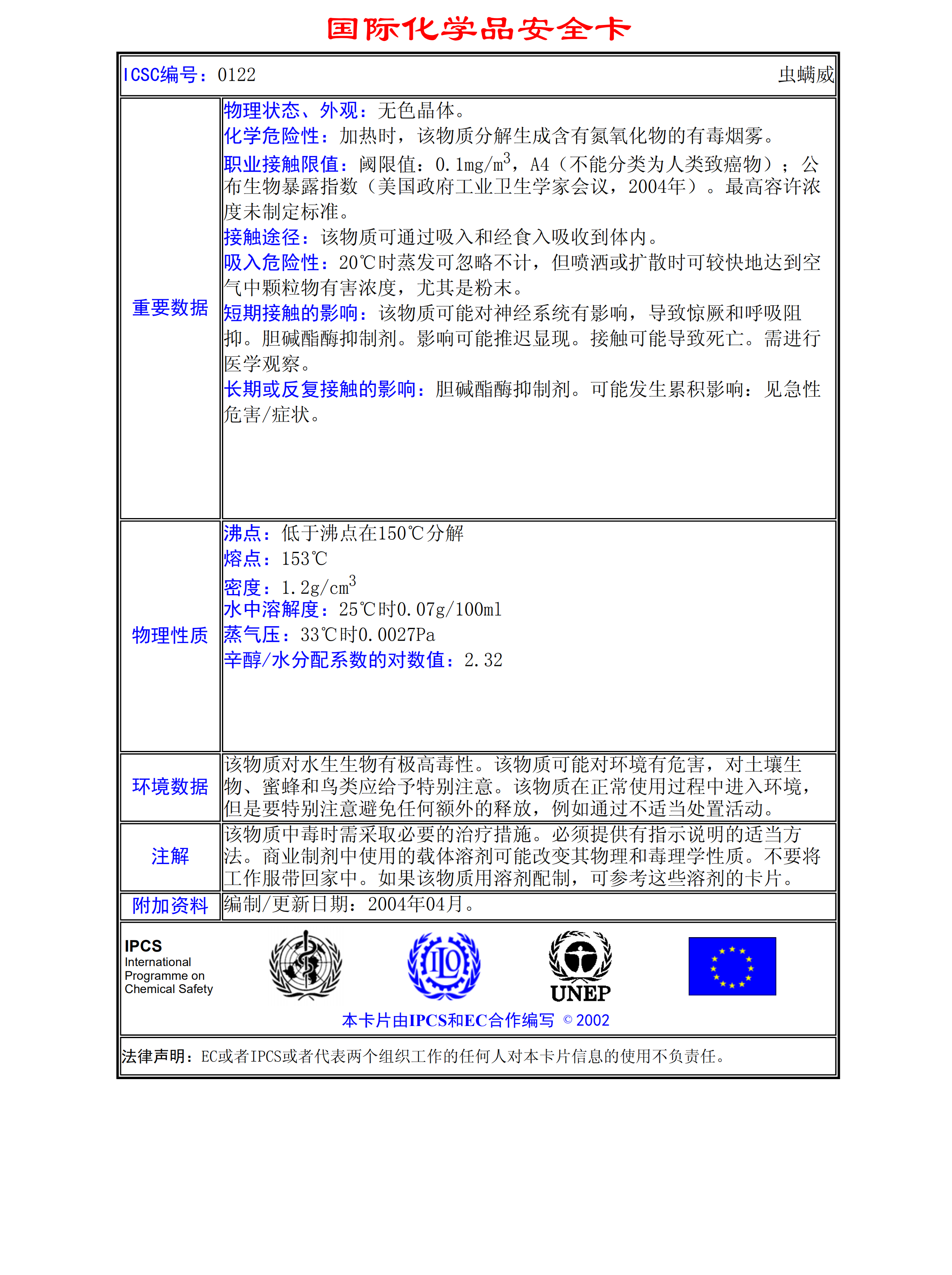 蟲(chóng)螨威MSDS