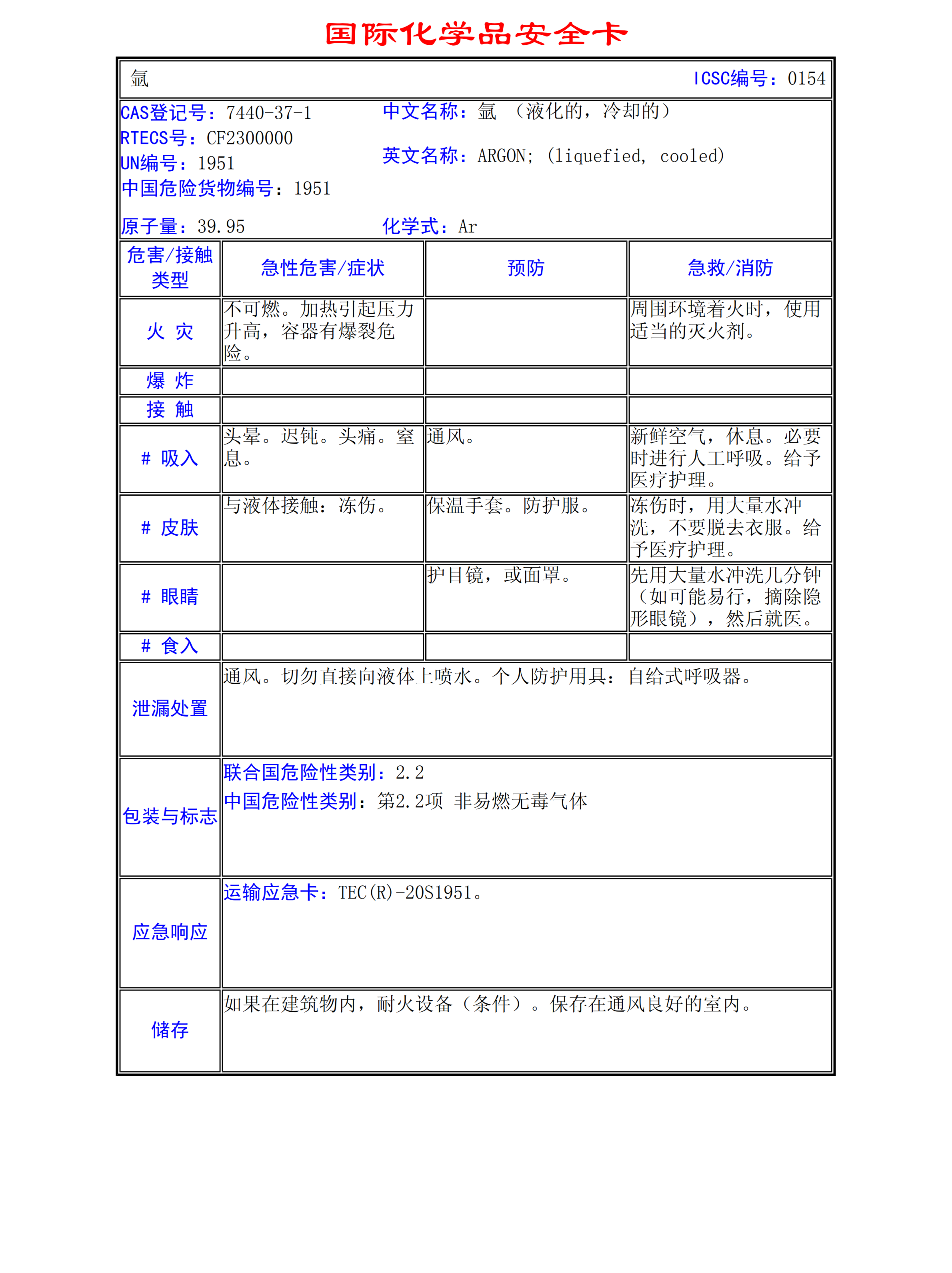 氬MSDS