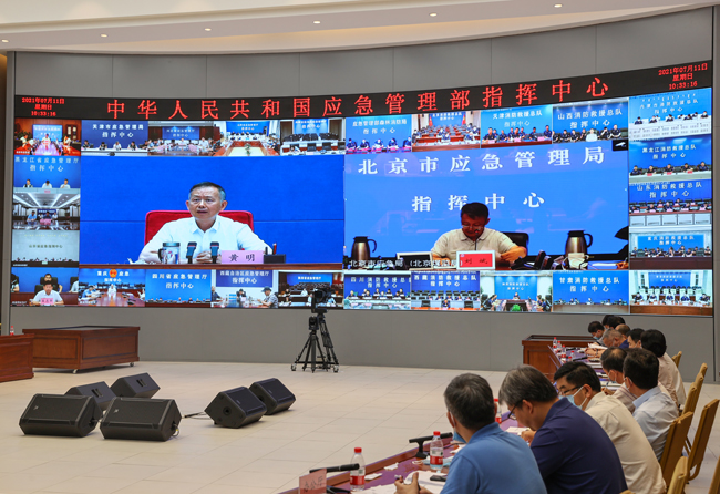 7月11日,國家防總副總指揮、應(yīng)急管理部部長(zhǎng)黃明主持召開防汛專題視頻會(huì)商調(diào)度會(huì)議,與中國氣象局、水利部、自然資源部會(huì)商研判,視頻連線四川、陜西、河南、山西、河北、北京等地防指、消防救援總隊(duì)和森林消防總隊(duì),會(huì)商部署當(dāng)前防汛和北方強(qiáng)降雨防范應(yīng)對(duì)工作。周學(xué)文、徐平、閔宜仁、瓊色等部領(lǐng)導(dǎo)參加會(huì)議。