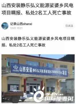 從媒體報(bào)道,山西安裝靜樂弘義能源娑婆鄉(xiāng)200MW風(fēng)電項(xiàng)目,于2021年1月18日發(fā)生一起2名工人在幸村鄉(xiāng)標(biāo)段作業(yè)途中傷亡事故。該項(xiàng)目部并未向上級(jí)政府部門上報(bào),私自隱瞞處理此事。