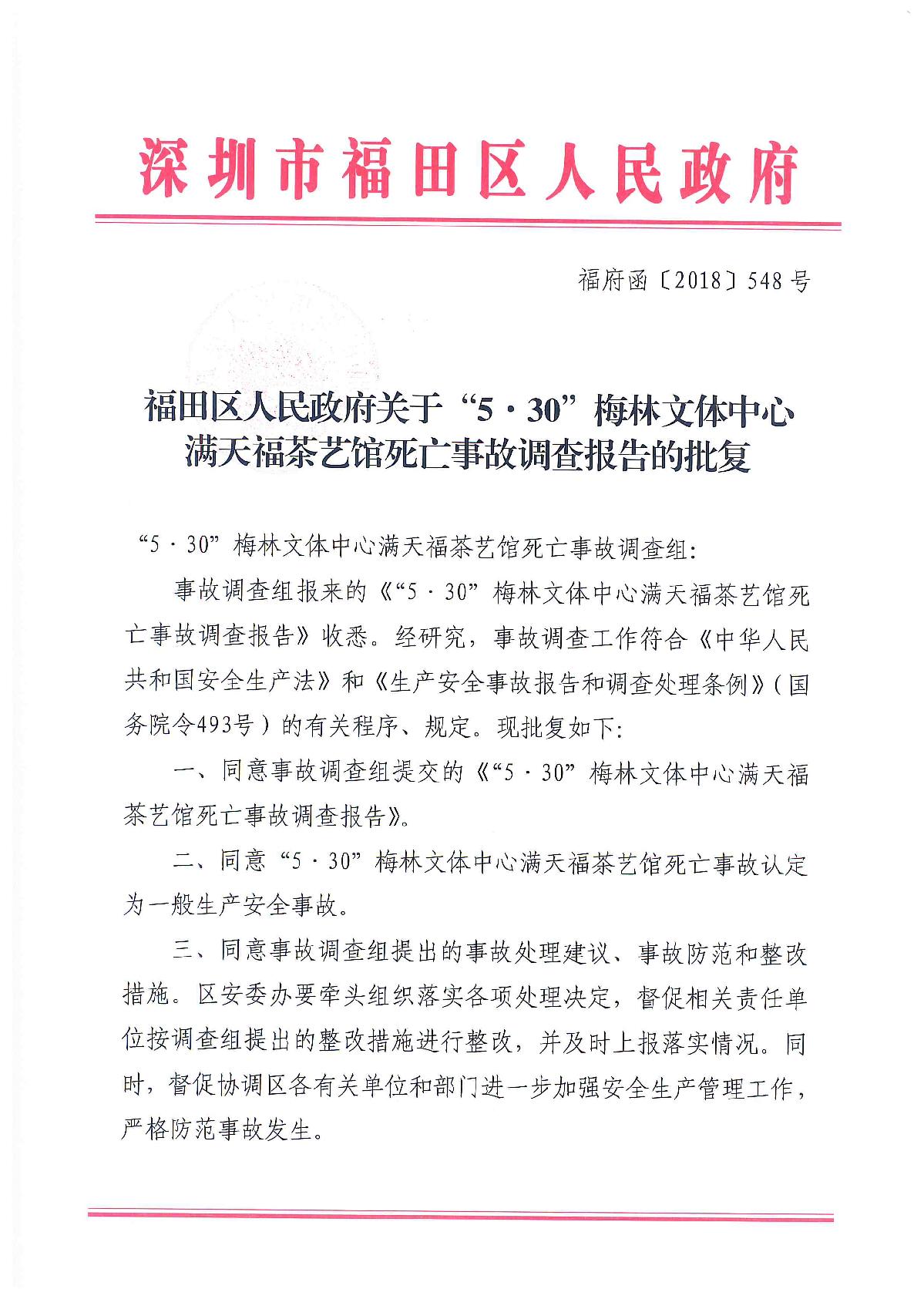“5.30”梅林文體中心滿天福茶藝館死亡事故調(diào)查報(bào)告