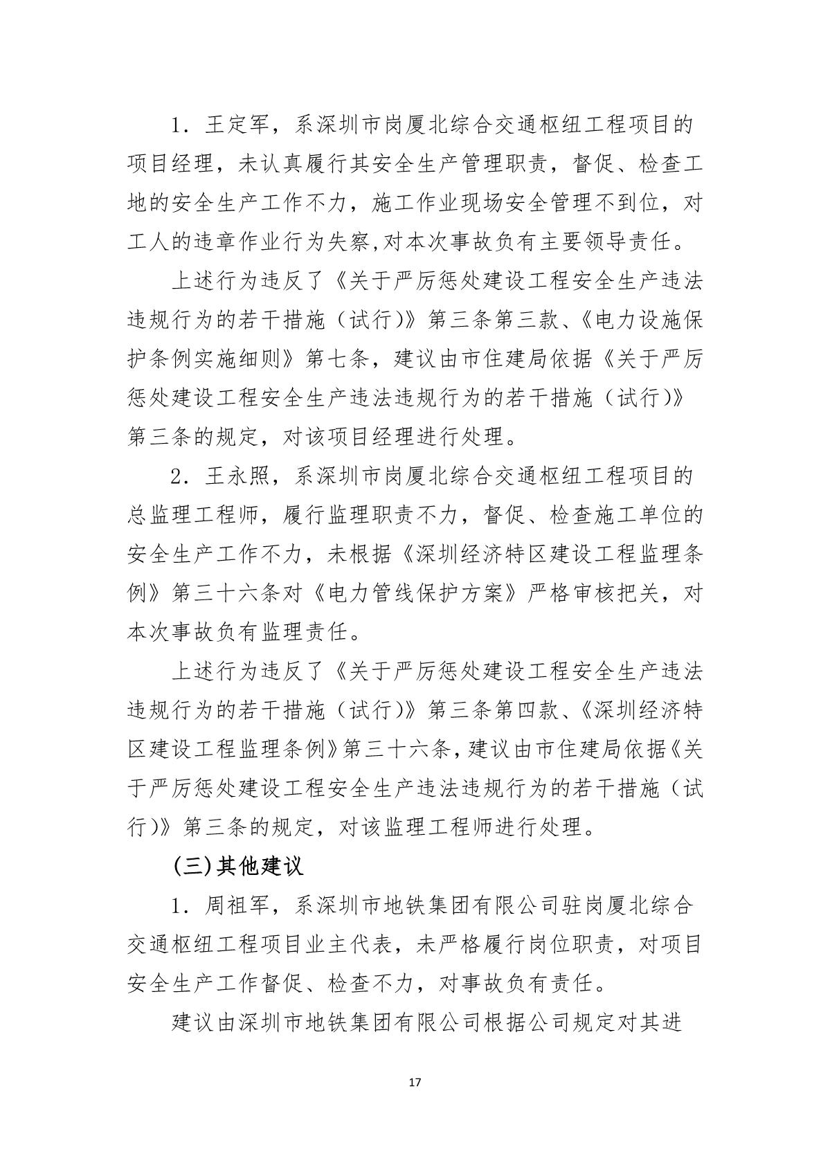 深圳市崗廈北綜合交通樞紐工程“7.07”10kv電力電纜受損事故調(diào)查報(bào)告