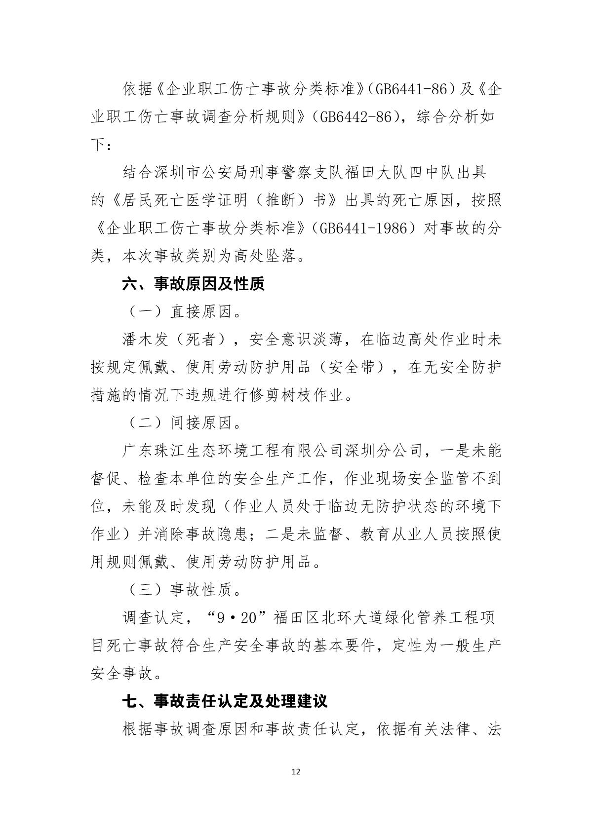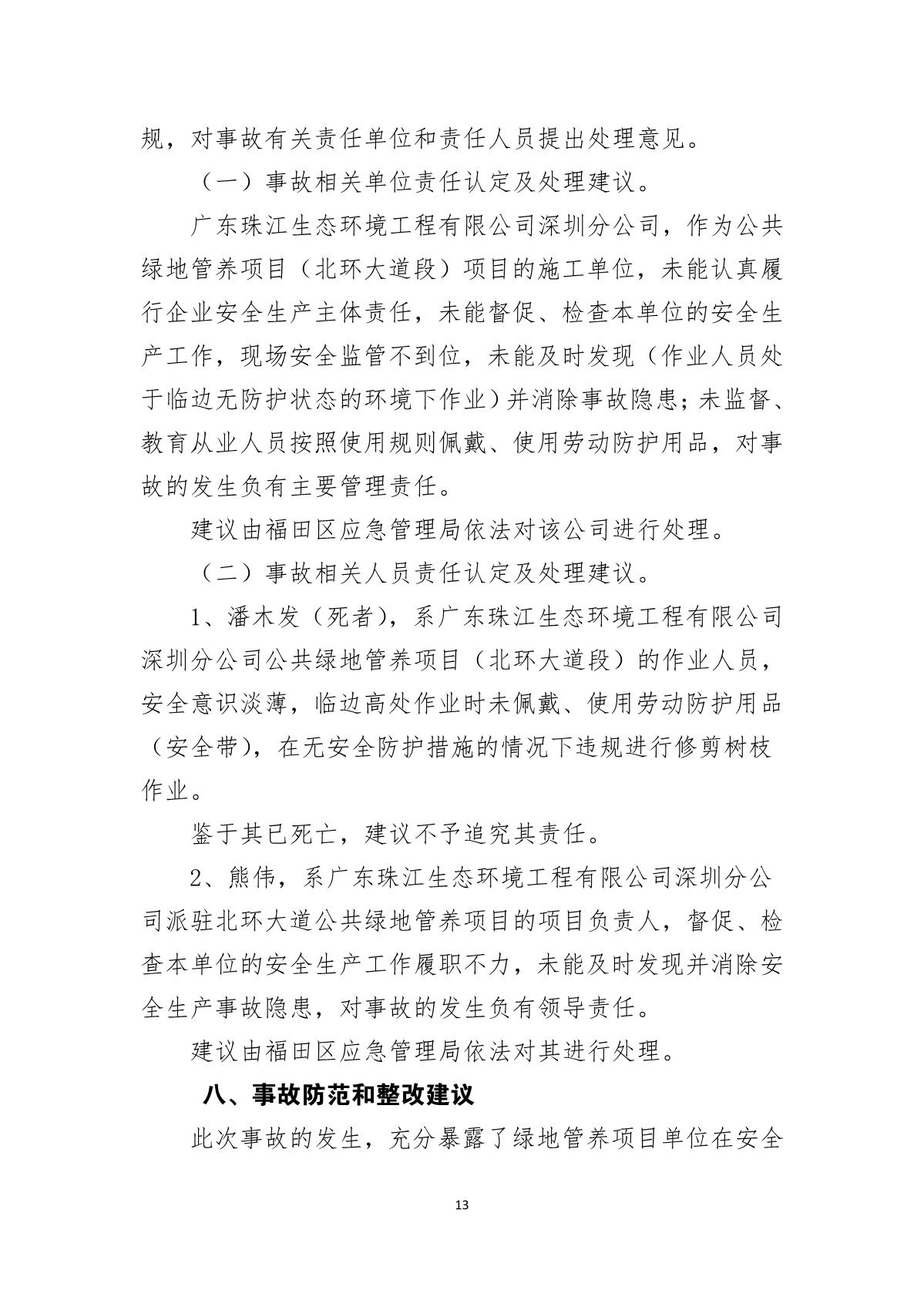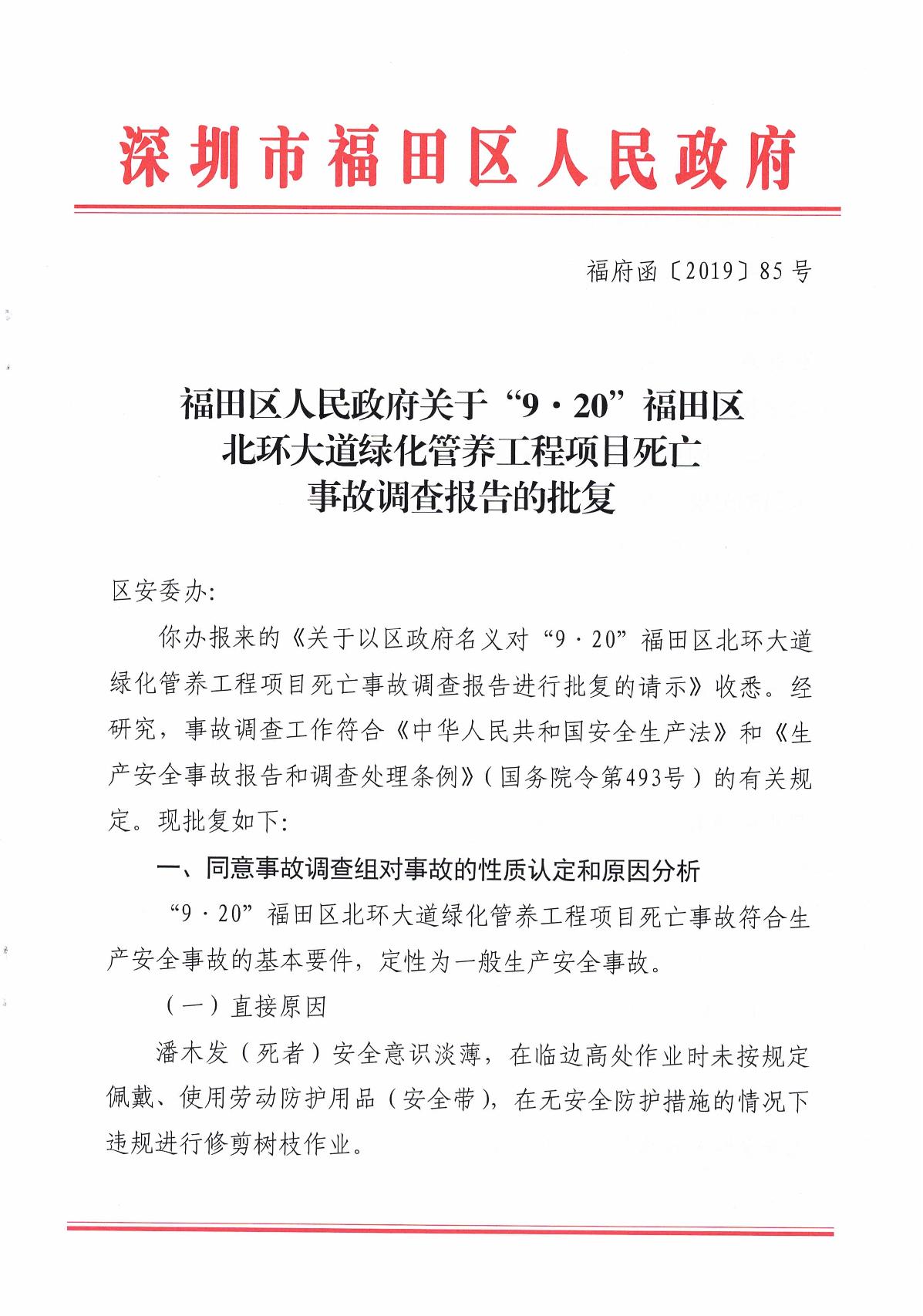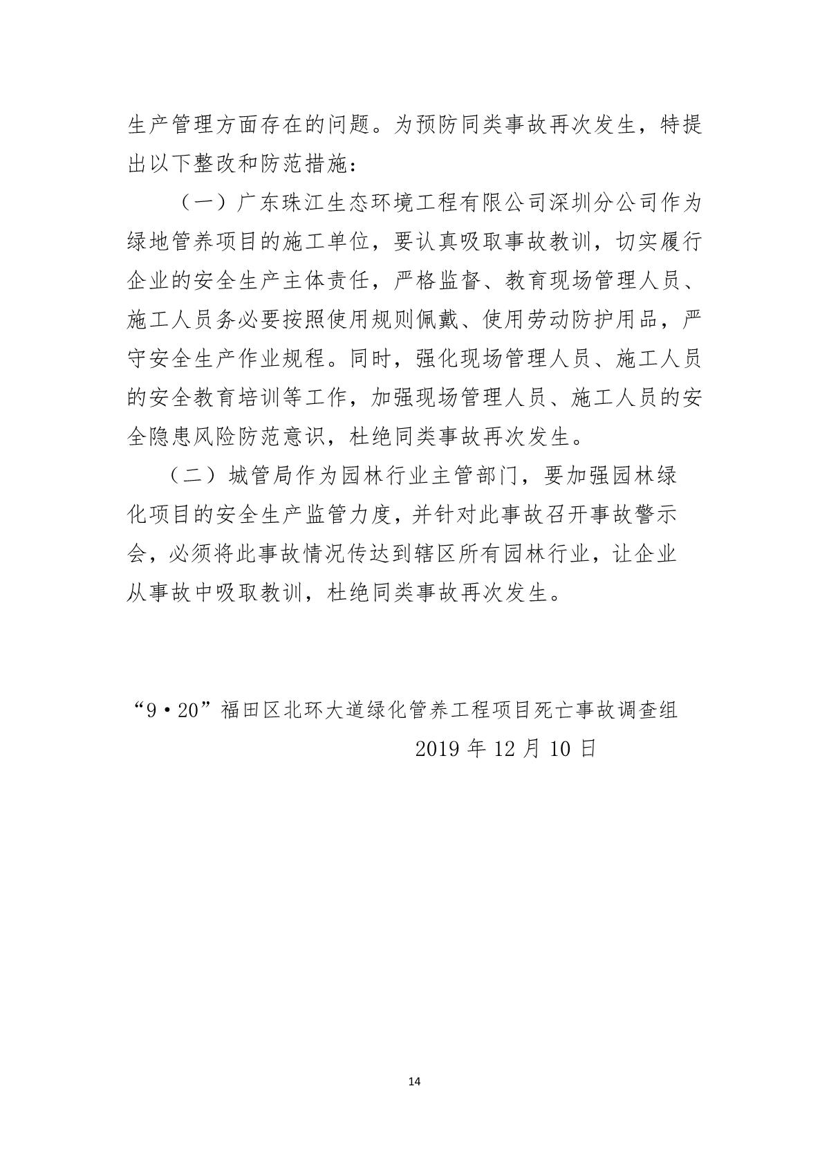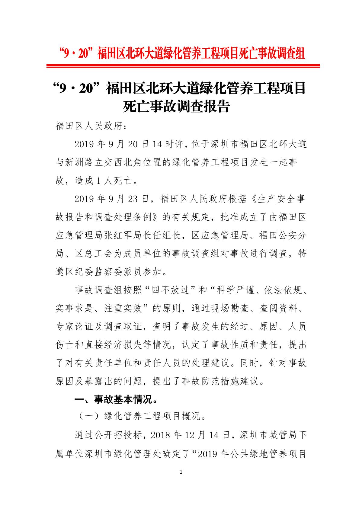 “9.20”福田區(qū)北環(huán)大道綠化管養(yǎng)工程項目死亡事故調(diào)查報告