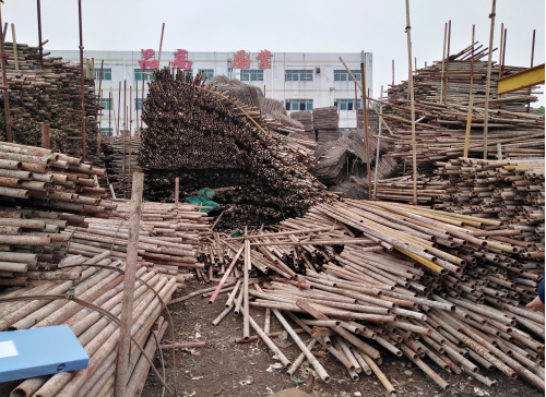 2017年2月19日,林秀銀請(qǐng)來溫依育及溫自群兩名臨時(shí)工到其堆放鋼管的場(chǎng)地整理鋼管。工作內(nèi)容是將散裝鋼管整理并打包。林秀銀租賃的場(chǎng)地兩側(cè)均為鋼管堆垛,后方為待整理的散裝鋼管,現(xiàn)場(chǎng)較為凌亂,通道不暢。其中左側(cè)鋼管堆垛(事故中發(fā)生倒塌的鋼管堆垛)最上方還堆放了高約1.2米的鋼笆片,鋼笆片堆放混亂,也不均衡,容易發(fā)生傾倒危險(xiǎn)。見下圖二。