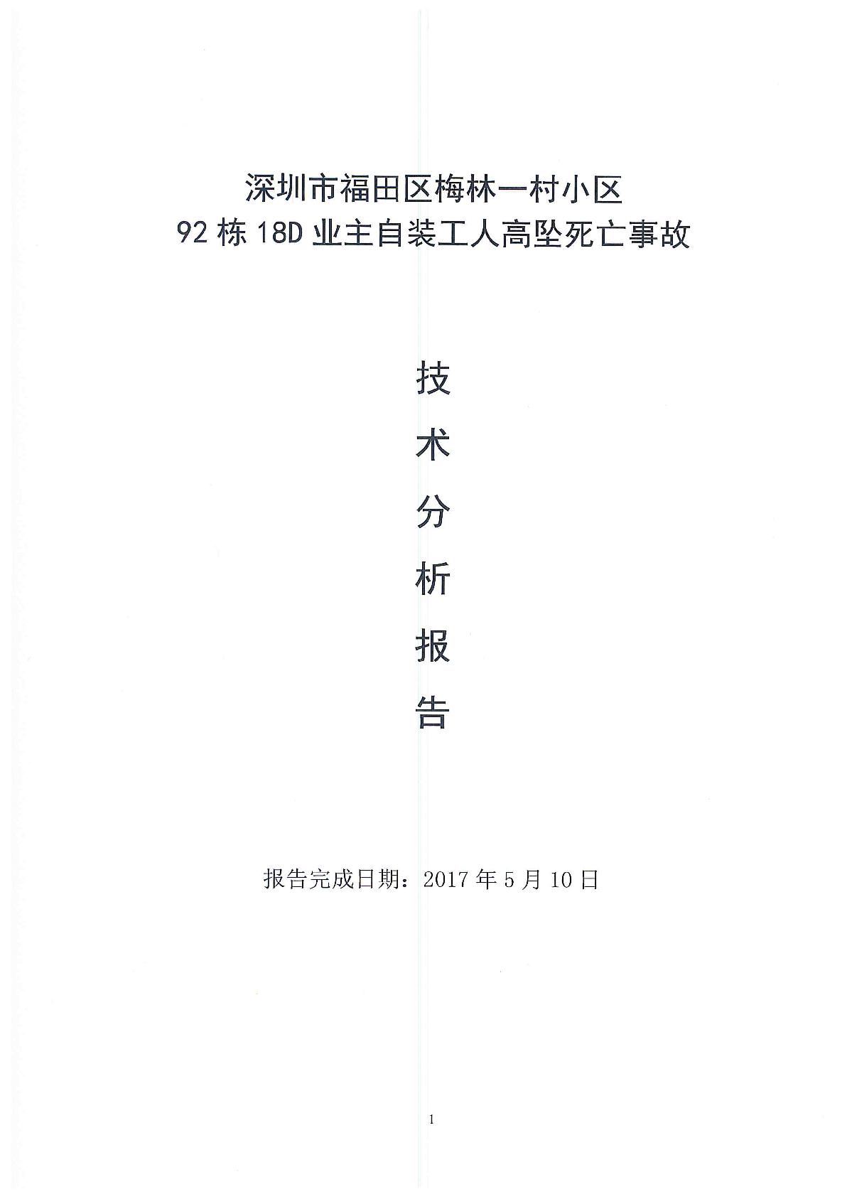 深圳市福田區(qū)梅林一村小區(qū)92棟18d業(yè)主自裝工人高墜死亡事故技術(shù)分析報告