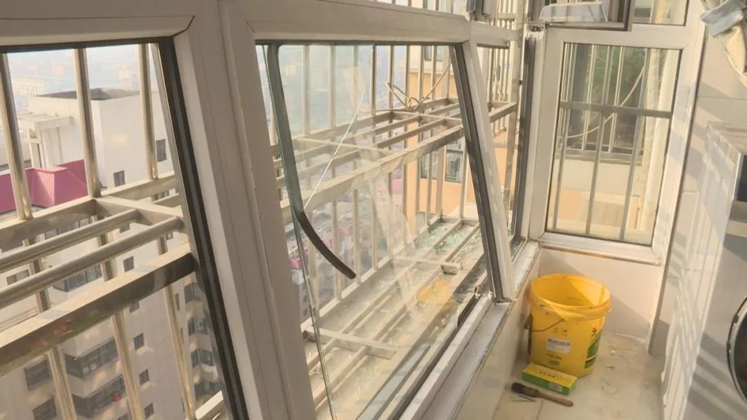 這是贊皇縣翰林官邸小區(qū)11號(hào)樓前監(jiān)控視頻拍攝的畫面。從監(jiān)控上看,樓上住戶玻璃破損有大量碎玻璃掉落到樓下。記者了解到這些碎玻璃是從這棟樓21層一戶掉落下來的。之后,記者來到這家住戶屋內(nèi)。