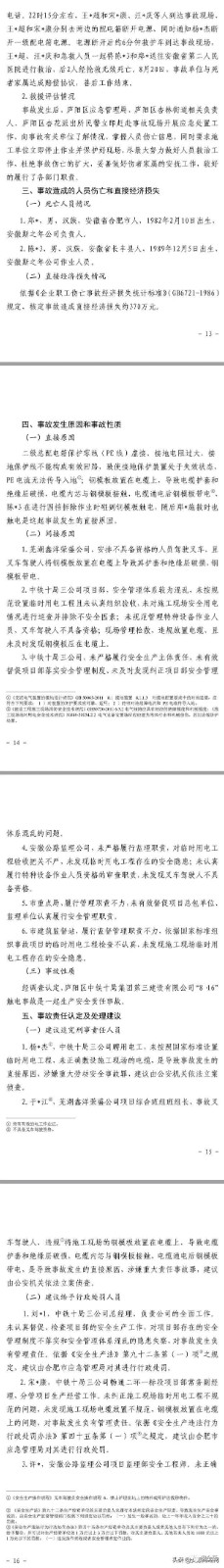 12月2日,合肥應(yīng)急管理局在其官網(wǎng)發(fā)布廬陽(yáng)區(qū)中鐵十局集團(tuán)第三建設(shè)有限公司 “816”觸電事故調(diào)查報(bào)告。