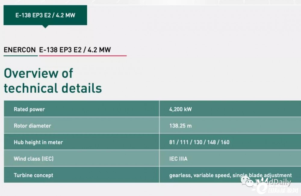 Enercon E-138 EP3風(fēng)電機(jī)組技術(shù)參數(shù):