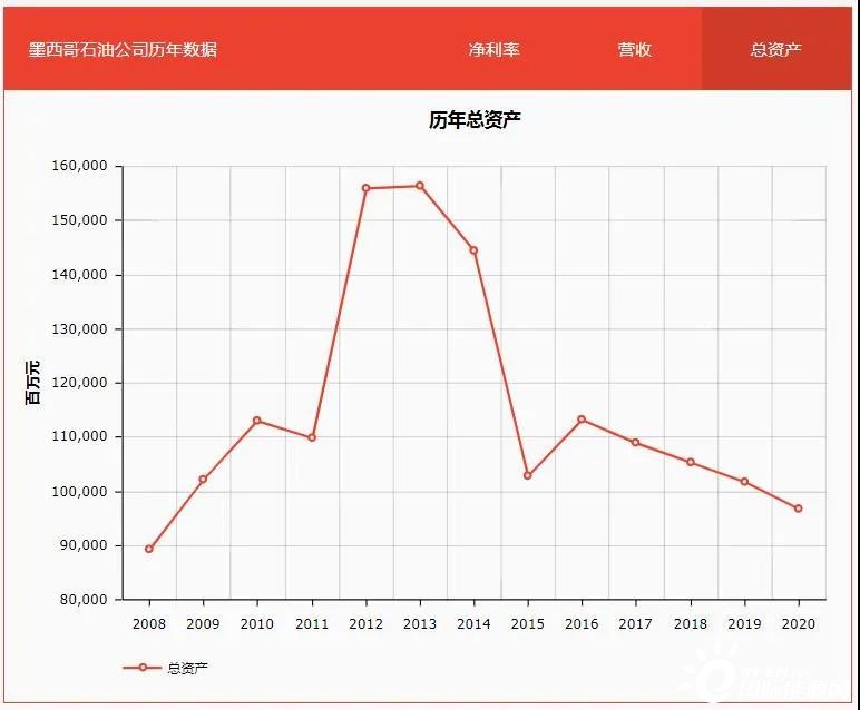 事實上,墨西哥曾屢屢嘗試改革,卻舉步維艱。2014年該國通過法案,希望吸引外資和私人資本參與到油氣勘探生產(chǎn)過程。受此影響,墨國油總資產(chǎn)在兩年內(nèi)出現(xiàn)小幅上升,但隨后又開啟了跌跌不休的模式。
