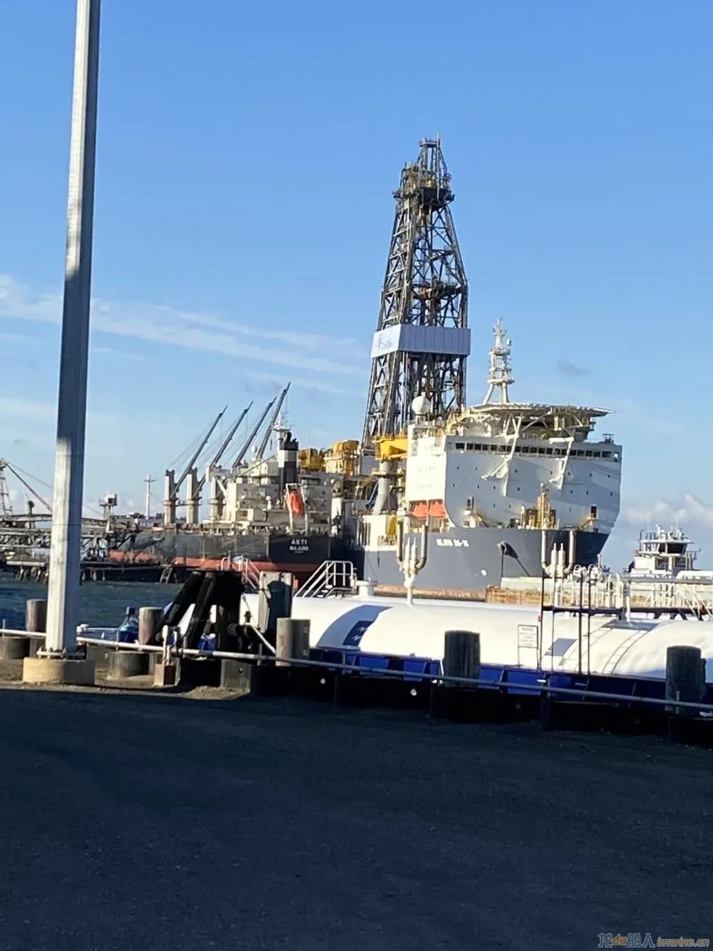 據(jù)報道,這艘鉆井船可以裝載58萬加侖的柴油。據(jù)美國海岸警衛(wèi)隊稱,這艘鉆井船由三艘拖輪錨泊。