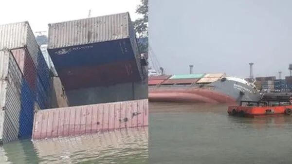 加爾各答港口官員報告說,這艘船于3月22日從印度薩加爾港抵達(dá)加爾各答,在3月24日上午剛剛完成裝載,總共裝載了165 個集裝箱,包括120個 20 英尺集裝箱和45 個 40英尺集裝箱。該船原定于今天啟程前往孟加拉國吉大港,然而突然在沒有任何征兆的情況下發(fā)生傾斜,并在15分鐘內(nèi)側(cè)翻和部分沉沒,導(dǎo)致集裝箱掉入港口。