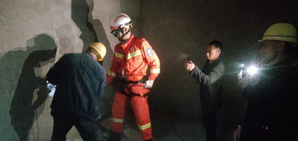 “在建居民樓為框架結構,墻壁尚未硬化加固處理過,可否比照兩人被困點,從屋內向外鑿出一個洞來,將他們救進來?”救援現(xiàn)場,有人提出了一個大膽的想法。后經(jīng)綜合評估商定,現(xiàn)場救援人員覺得此方案可行。