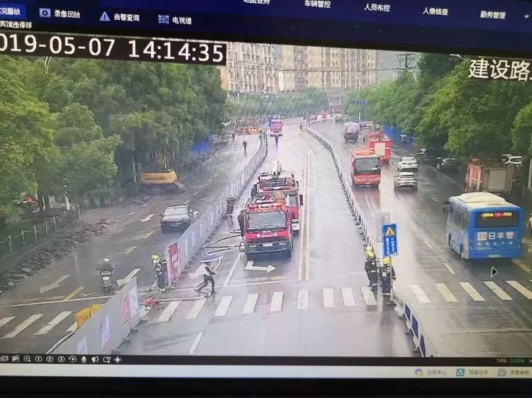 支隊(duì)指揮中心接警后,迅速啟動(dòng)市政設(shè)施故障事件應(yīng)急預(yù)案并報(bào)告支隊(duì)領(lǐng)導(dǎo)。領(lǐng)導(dǎo)指揮崗迅速通知轄區(qū)中隊(duì)趕赴事發(fā)現(xiàn)場進(jìn)行交通管控并指派直屬大隊(duì)進(jìn)行增援。視頻巡查崗打開事發(fā)路段前后球機(jī)及高空云臺對事發(fā)路段進(jìn)行實(shí)時(shí)監(jiān)測。