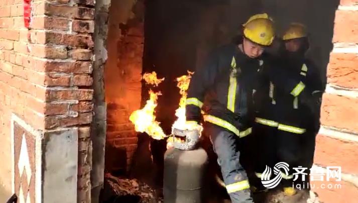 29秒|民房遇火災房頂坍塌 消防員“淡定”拎出噴火煤氣罐