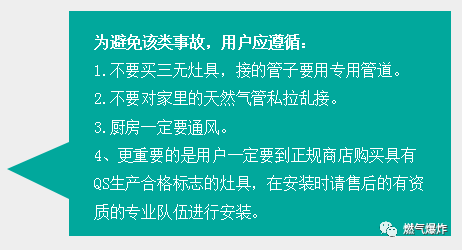 2012年7月27日重慶奉節(jié)縣一居民家發(fā)生天然氣意外泄漏事故,發(fā)生事故的居民家中所有家具和電器都被燒毀,窗戶的玻璃已被震爛。爆炸造成一家6人燒傷,最終一人搶救無效死亡。據(jù)網(wǎng)上報(bào)道爆炸是由于天然氣管道與輸氣軟管之間存在縫隙,導(dǎo)致天然氣泄漏引發(fā)的。在該戶家中,發(fā)現(xiàn)新買的燃?xì)庠罹?,是個(gè)三無產(chǎn)品。該戶的燃?xì)夤艿?,是由兩根軟管接起來的,一根軟管不夠長,中間還用一根硬塑料管連了起來,還使用了膠水來粘接,這是非常危險(xiǎn)的作法,連接的塑料管是硬的,天然氣完全可能因連接處泄漏出來。也許是用戶點(diǎn)了火,也許只是開了某一種電器的開關(guān),就引起了天然氣爆炸,隨后的火焰擴(kuò)散,屋內(nèi)東西全部燒毀。
