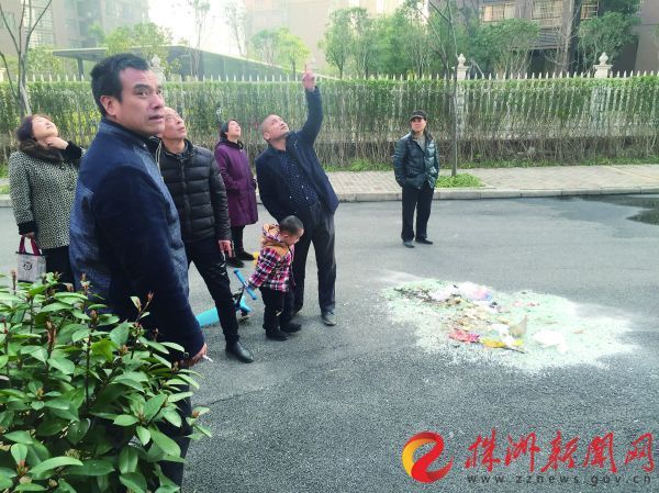 事發(fā)樓棟附近路面散落著許多玻璃碎渣