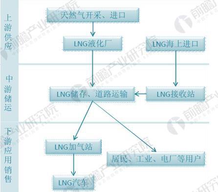 LNG 產(chǎn)業(yè)鏈?zhǔn)且粭l貫穿天然氣產(chǎn)業(yè)全過程的資金龐大,技術(shù)密集的完整鏈系。由陸地或海上油田開采的天然氣在液化工廠經(jīng)過預(yù)處理后進(jìn)行液化,生產(chǎn)的 LNG 按照貿(mào)易合同,通過船運(yùn)或槽車運(yùn)輸?shù)?LNG 接收站儲(chǔ)存,再氣化,經(jīng)由管網(wǎng)送到用戶。具體來看,整個(gè) LNG 產(chǎn)業(yè)鏈主要包括上、中、下游三個(gè)環(huán)節(jié)。