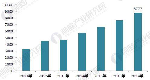 圖表 4:2011-2017 年中國(guó)天然氣發(fā)電累計(jì)裝機(jī)容量(單位:萬千瓦)