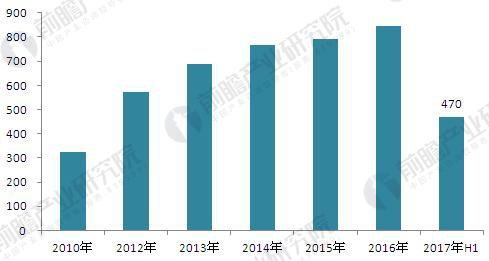 圖表 5:2010-2017 年城市燃?xì)庀M(fèi)量(單位:億立方米)