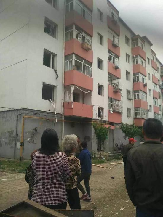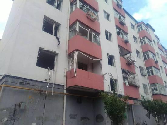 現(xiàn)場(chǎng)可以看到,此次爆炸的破壞威力較大,2-38號(hào)樓一單元共有10戶(hù)住宅,單從外表來(lái)看,已經(jīng)有7戶(hù)居民家的玻璃窗受損,周?chē)⒙渲罅康牟A槠?,甚至有些玻璃碎片扎到了?duì)面樓的墻體里。